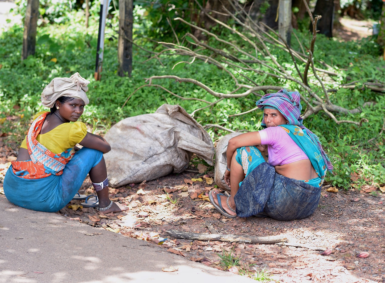 and the women on a break.... they coolect rubbish in the bags then take it to the truck