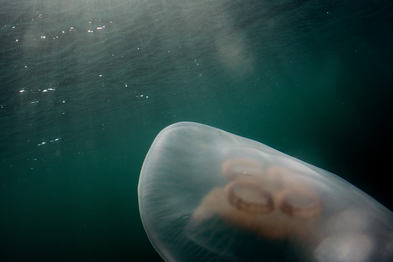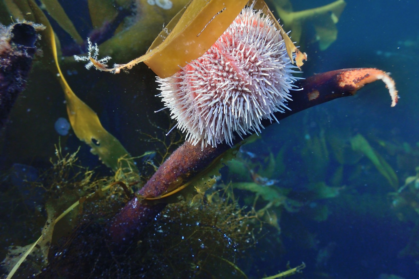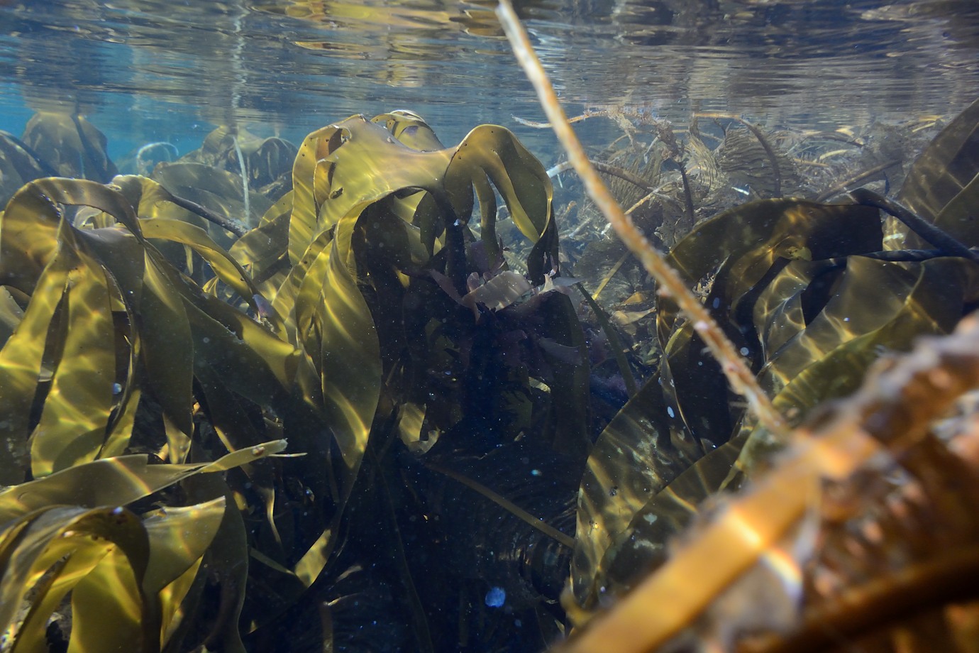 I actually had much better luck with the video (which is of high image quality), while swimming through kelp forest in shallow water. One could have wished for image stabilization though... I supplied the clips to Tine Surel for inspiration and self promotion. (She is not a scuba diver, but uses themes and sounds from coast and sea as part of her music). To my joy I later found that she had edited them together to use it as a backdrop for her music at some live concerts and in a YouTube video called "Tarre" (a twist on the word "tare" which is kelp); it was edited down to 720p: