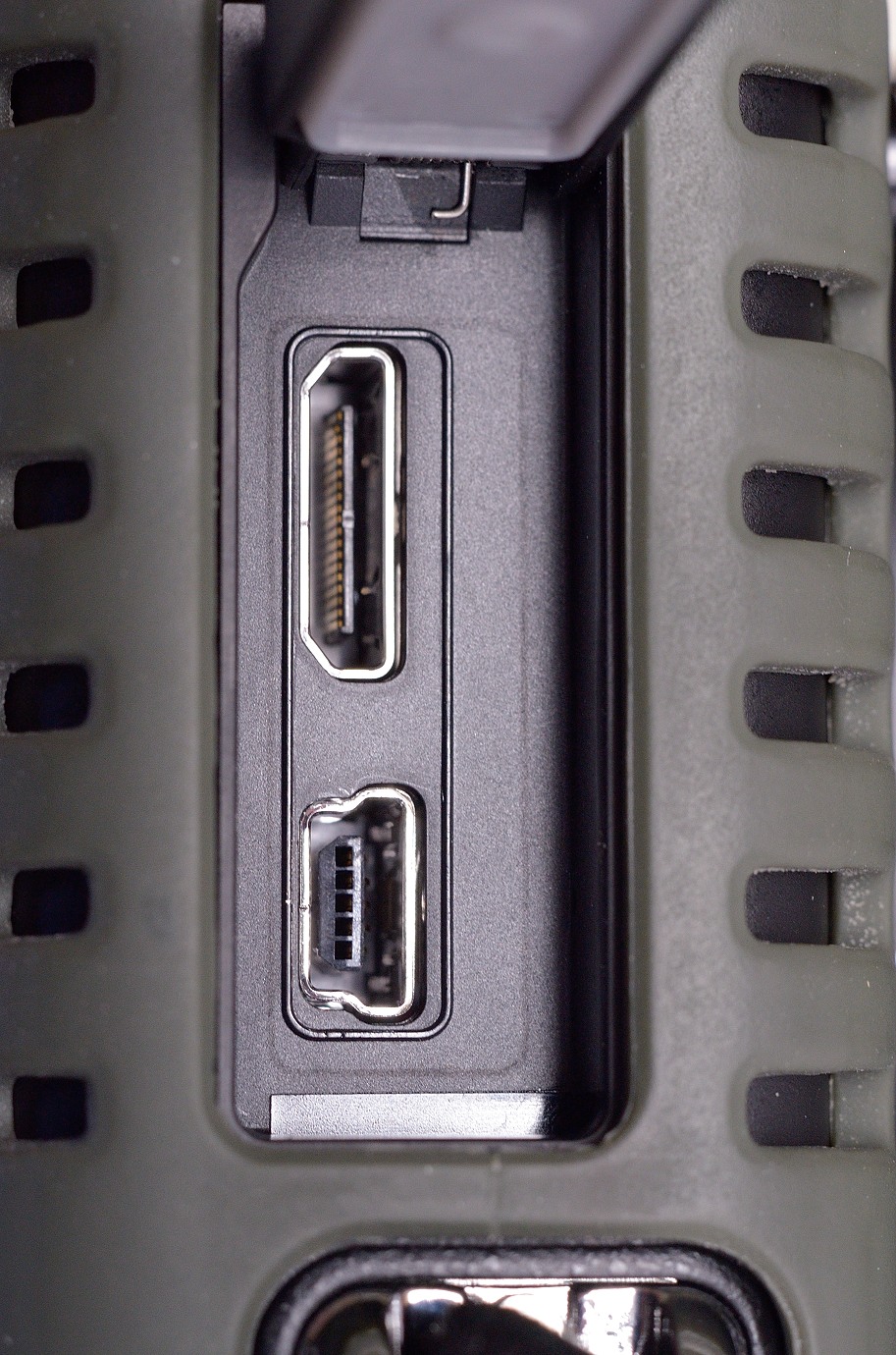 If it had been up to me I would have dropped the ports for the connectors altogether, and compensated by installing the missing ir-remote receiver in the little window for the focus assist light.