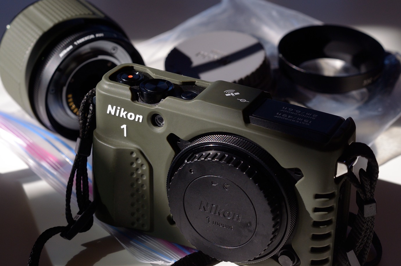 In the film days I always wanted a green Nikonos V (but finally only got an orange version bought from a friend after restoring it after flooding) so I was very happy when I found a green version of the silicone jacket for the AW1.