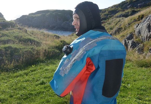 Then it was time to take it for a swim in Nyksund. Only at the surface though because of a leaky dry suit zipper, I had Tine help me put duct tape above the zipper to reduce leaks.