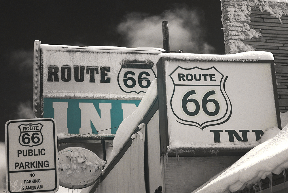 33. The Route 66 itself is more or less gone since nobody apparently cares for preserving such history marks. Unless you can make it into money later of course. From the small town of Williams, Arizona. D200 with Noct-Nikkor lens. Do note this picture has the traditional "click-white IR" white-balance which I normally try to avoid, but in this case it worked well enough so I let it be at that.