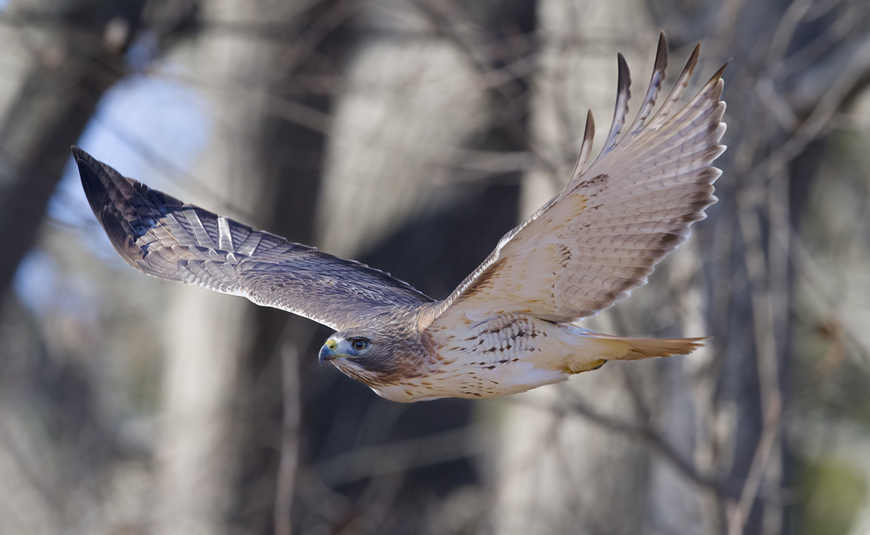 I have stalked Birds of Prey for years, I have not seen them give much more than 50 Metres if they feel your attention is on them and they always choose to be in cover using it to their advantage.