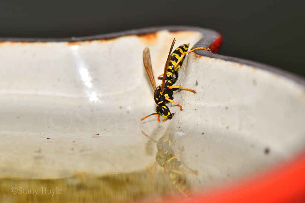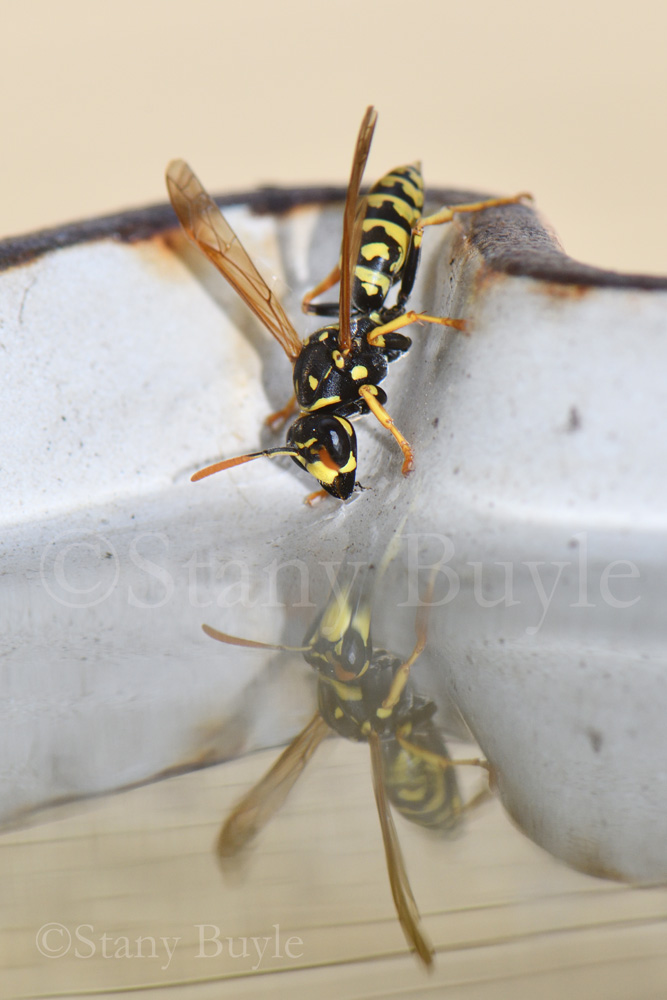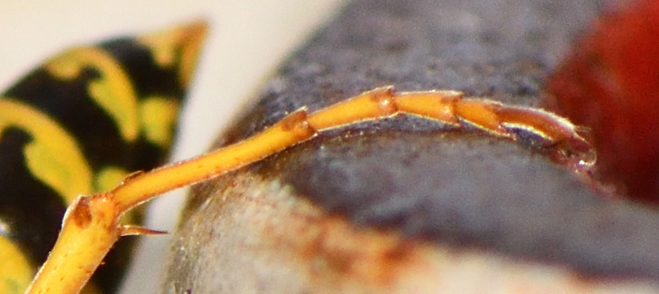 The way the wasp suspend only by one rear leg can be clearly seen!