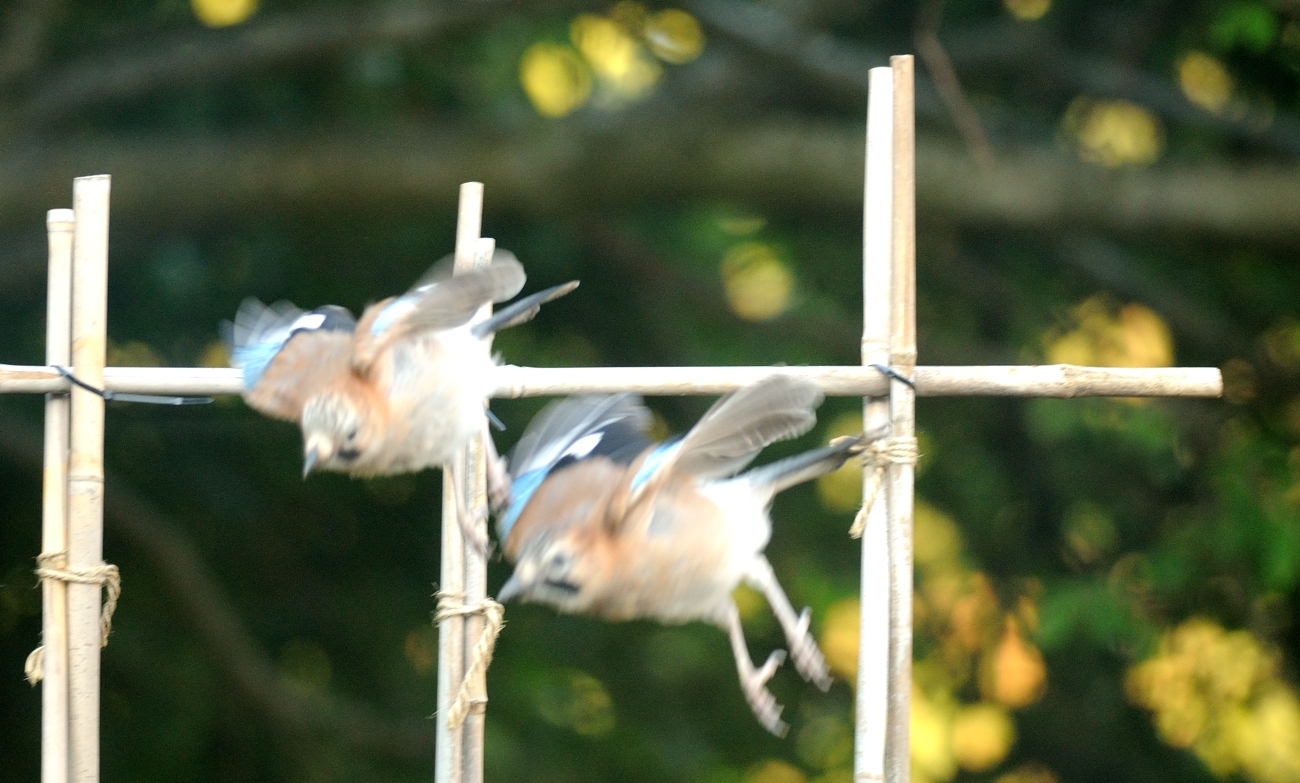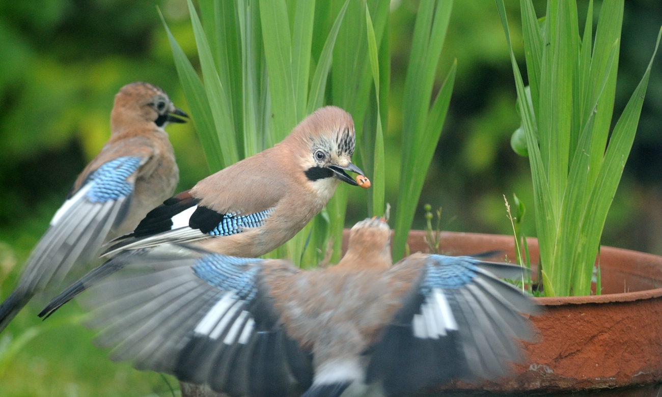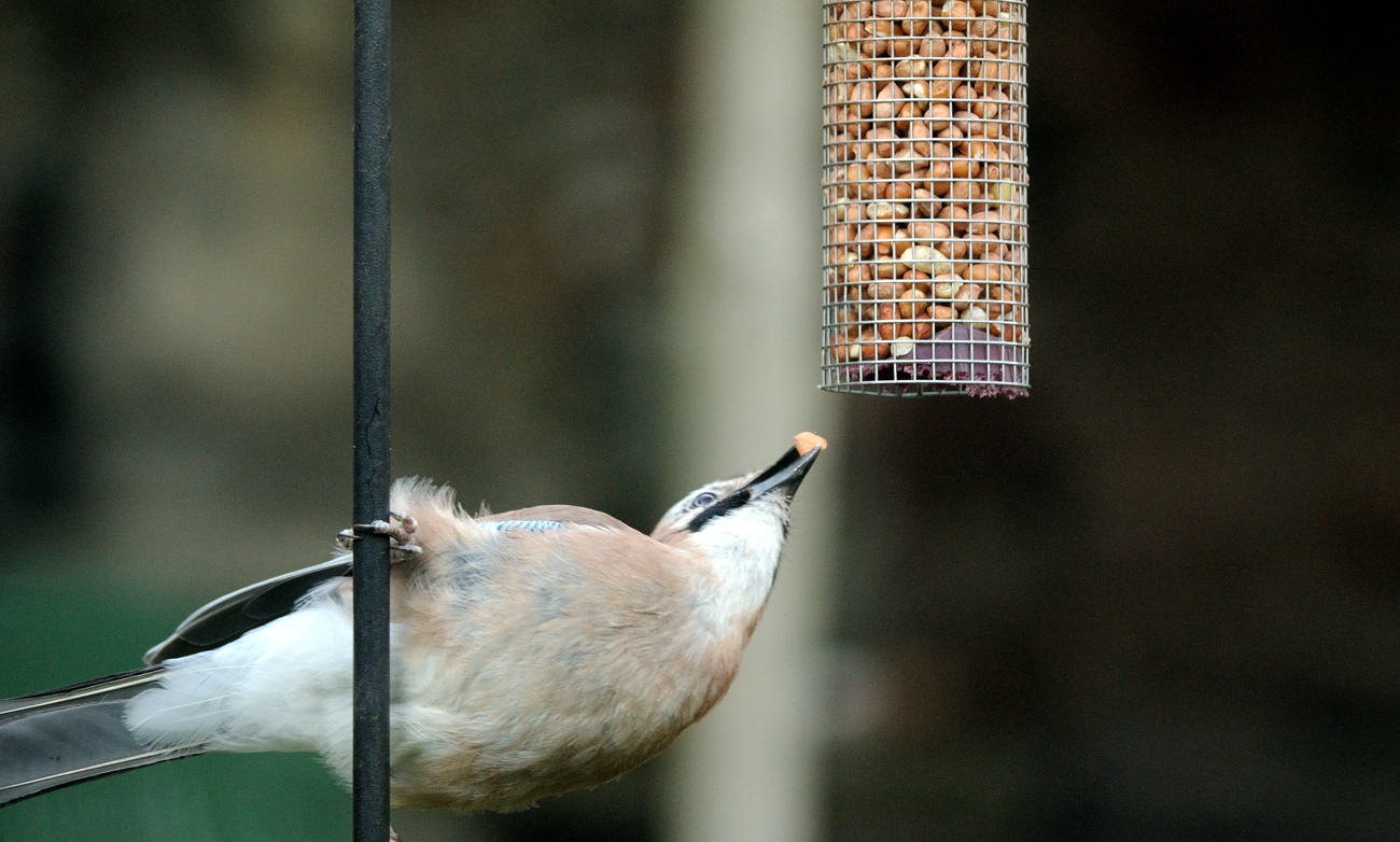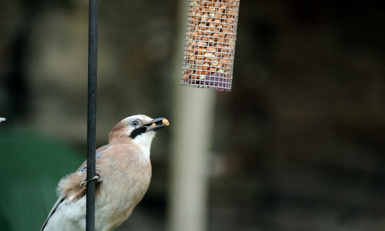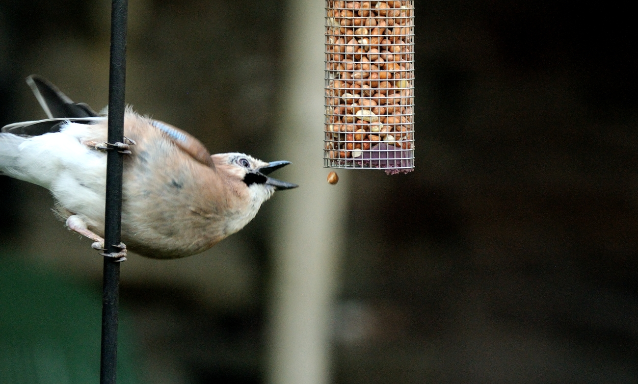 It's funny to watch bigger birds like Rooks and Magpies fly away if they detect any movement from the house. The squirrel will push out any other animal but again is really jumpy and runs away if it sees us moving. But with the small birds I can walk as close as maybe 3m away and they carry on feeding.