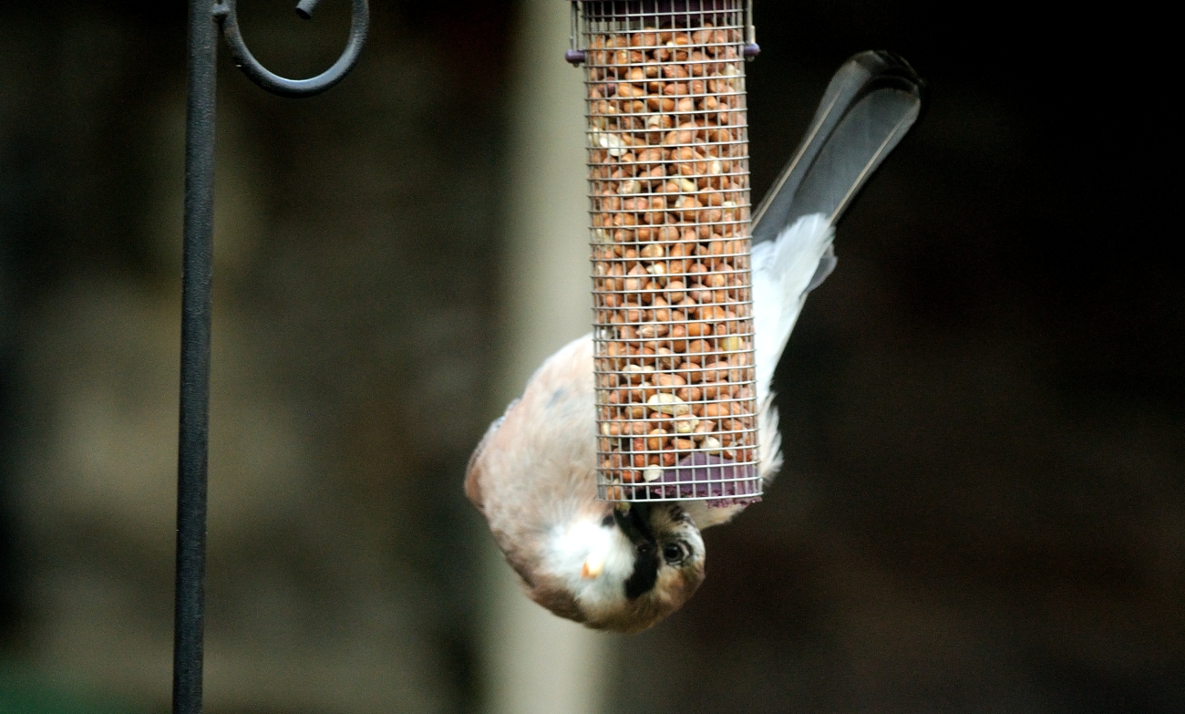 There's quite a hierarchy of beasts that come to visit the nut feeder. In terms of most dominant (the one that pushes everyone else away) to most timid, the ranking is