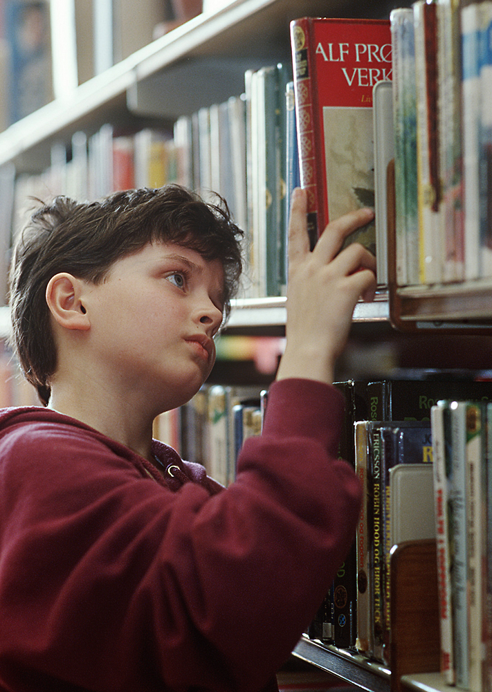 the topic title says it all. My son captured during a visit to the local library with the 85 mm f/1.4 AIS Nikkor set wide open (Nikon F4).