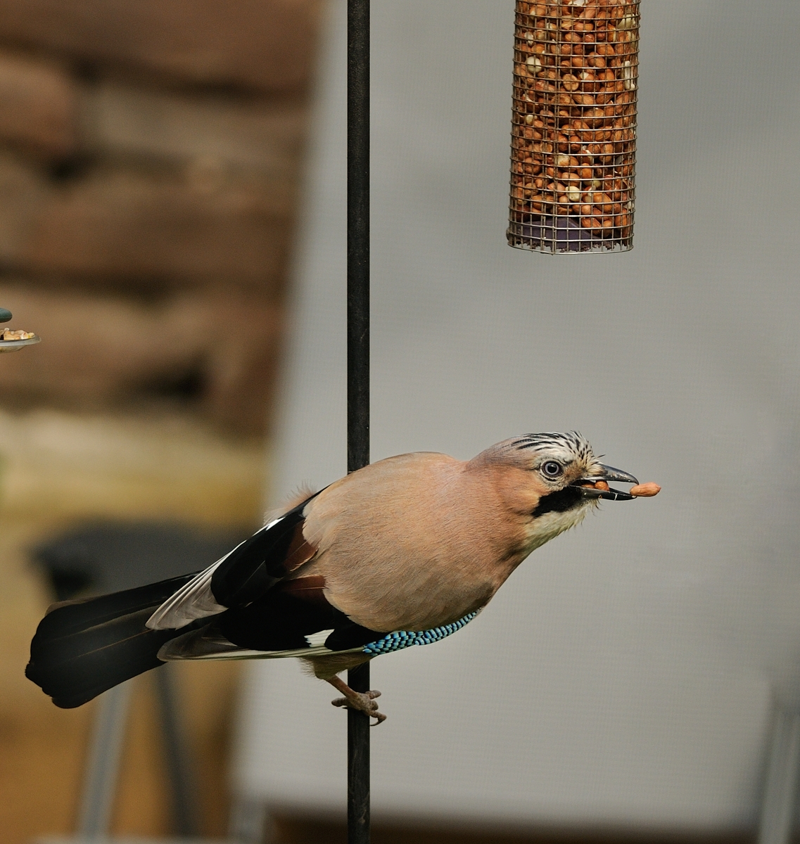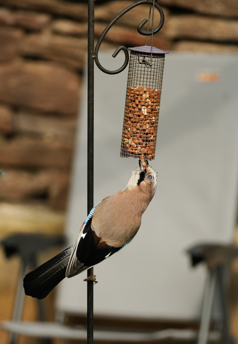 There are periods of several hours when the birds don't come and I generally have slots of maybe 20 minutes before & after work when the light is actually good enough. Also the Jays are very easily spooked if they detect any movement.