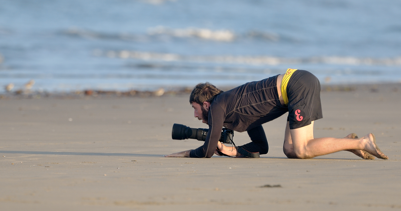 Dignified way of sneaking up on shore birds . A visiting Spaniard. D300s,500vr w/tc1.4 handheld. Just a bit of fun Tom