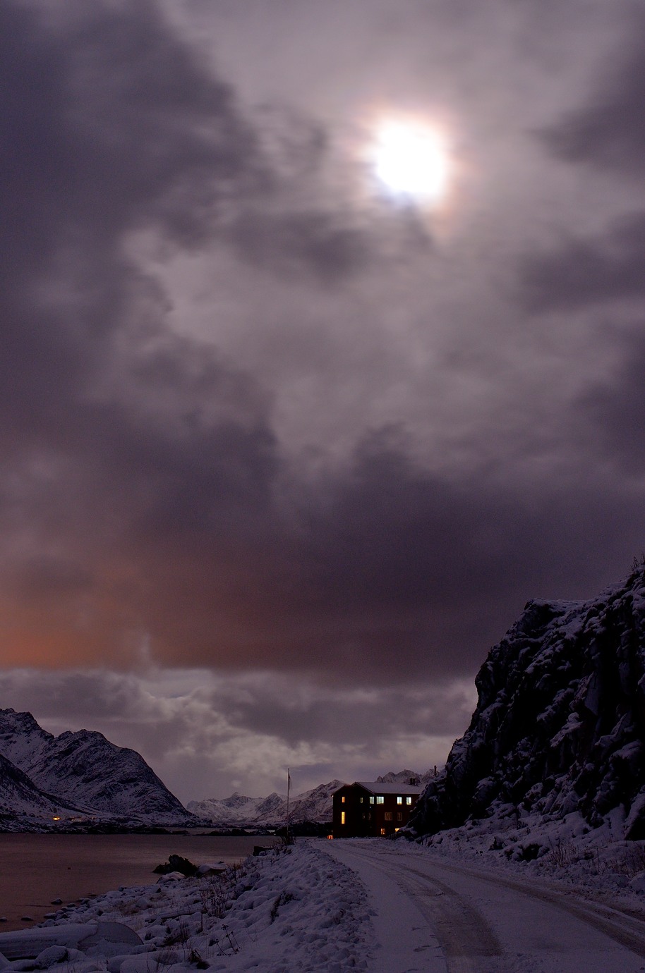 Absolutely and definitively the moon. Shoot around 2300 or so in the evening in early spring, at the time of the year when the famous Nordic "blue light" starts to be significant.