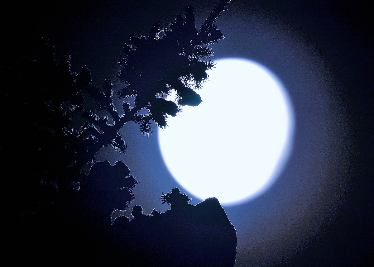 The moon can be used as a source of back-light, but inevitably the face does not show (in this case somewhat past last full moon).