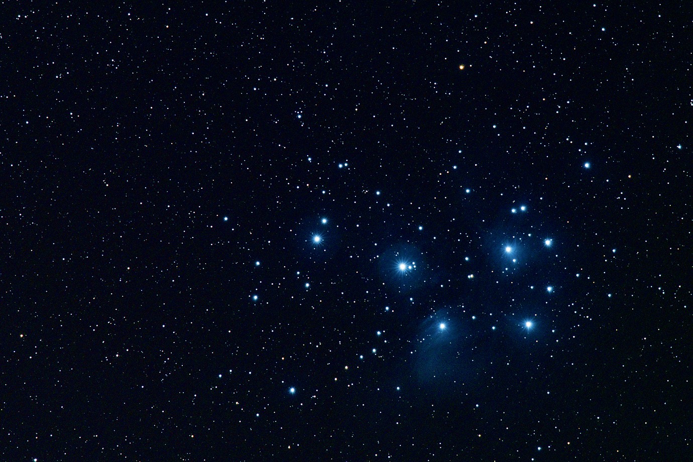 Pleiades, M 45, Stack of 10 images at 50 sec, 300mm at f/4.5, ISO 1600. Crop to ca. 1/2 of the frame.