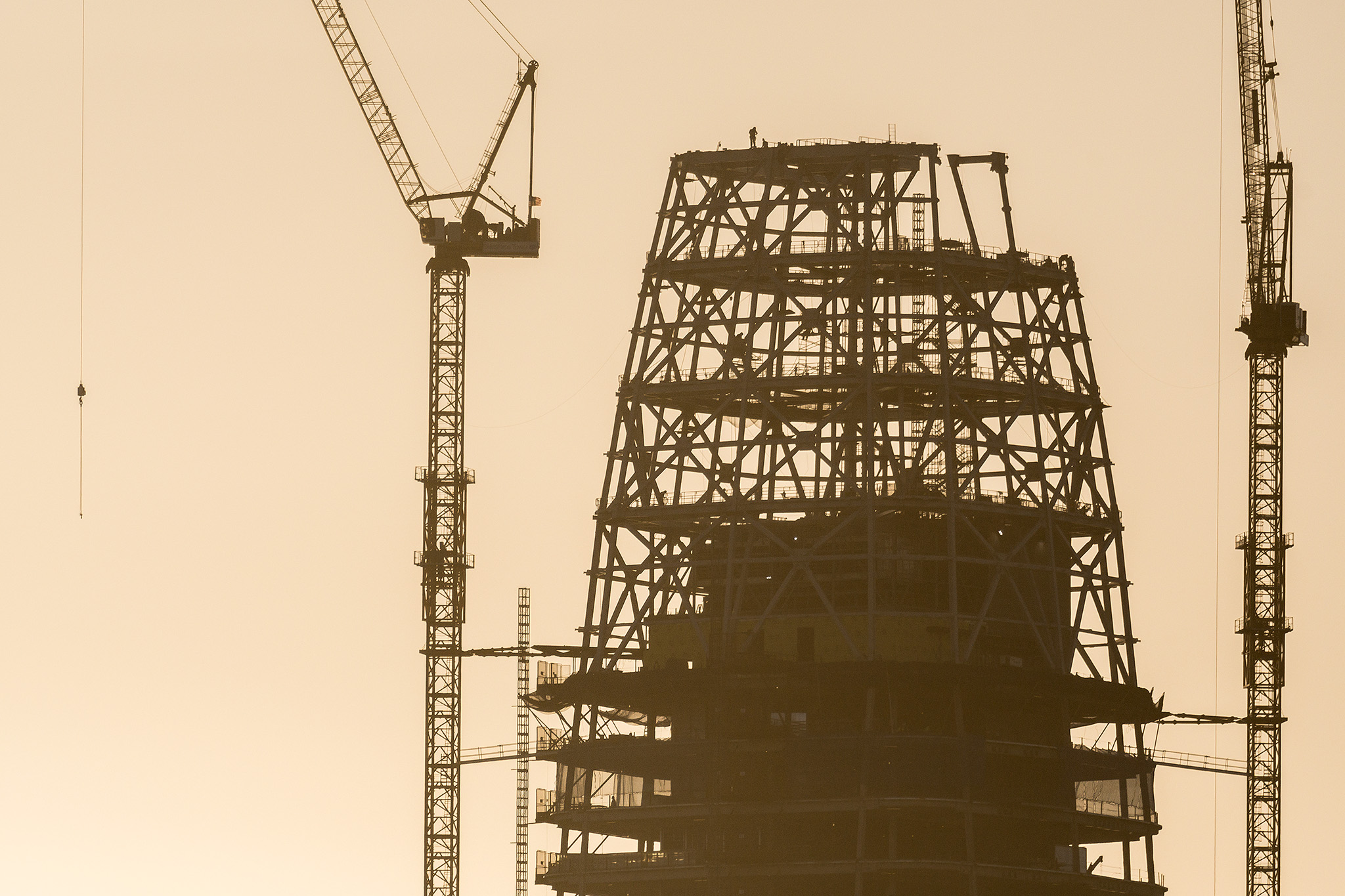 it's been interesting watching the progress of this new tower downtown from our bedroom window. for reference, the subject is 2.55km away and 326m high.