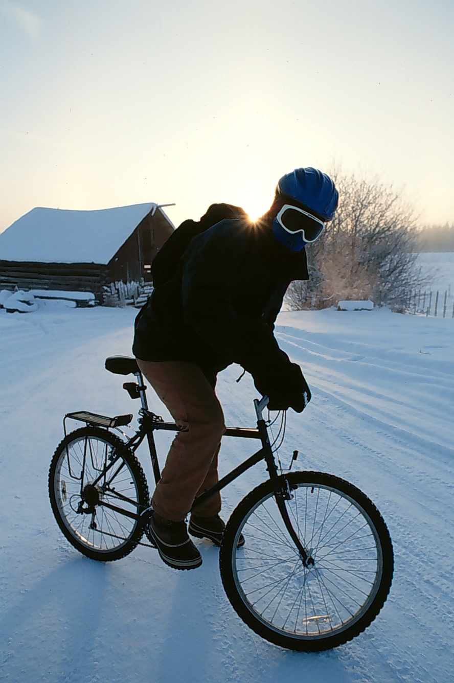 Cold weather bicycling (both old slide scans); this first one at -50°C as I recall.