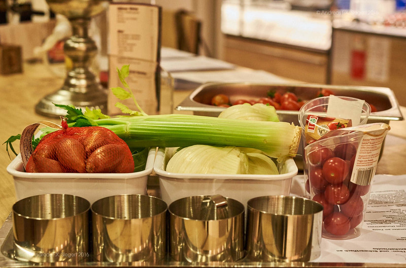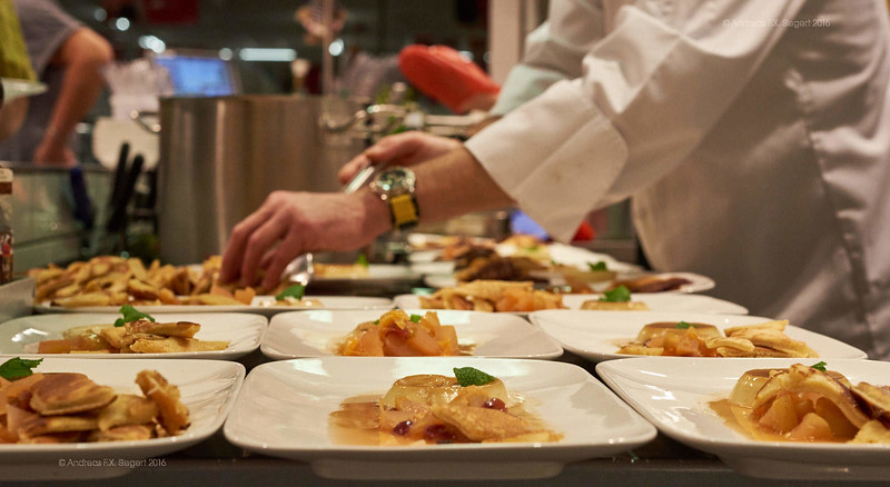 Putting the finishing touches on the desert (two types of Kaiserschmarrn with fruit compote):