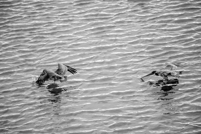 The dark overhead cloud cover - very rare here with so many clear days - and the bright light the other side of the bay gave the water an extraordinary texture looking down on it from the hills and made the birds much more appealing as subjects for me than they would otherwise be. It also made me realise I have a lot to learn about photographing birds, but I find the images pleasing nonetheless.