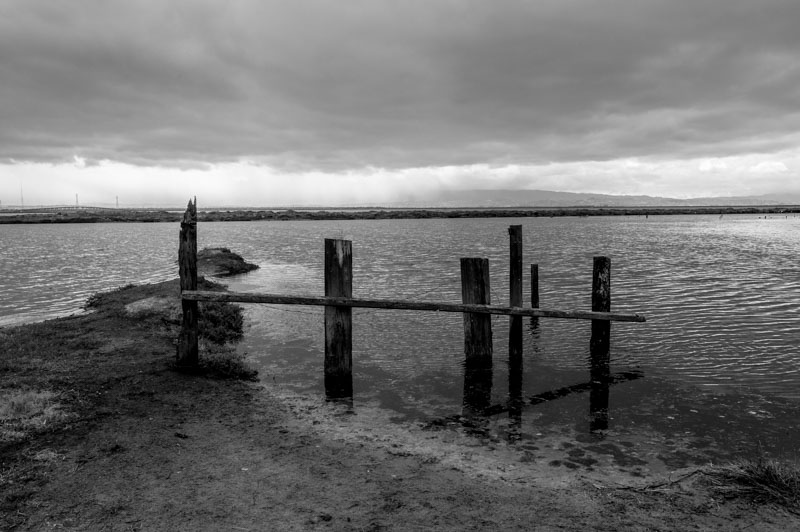 Near us is a park called Coyote Hills, which often offers a great view down the bay and shows the Dumbarton, San Mateo and Bay Bridges to good advantage when the light is right. This part of the bay was formerly used for salt production by evaporation and still has many remains of the equipment used to shuffle water from one pound to another. Much better photographers than me have documented the way the