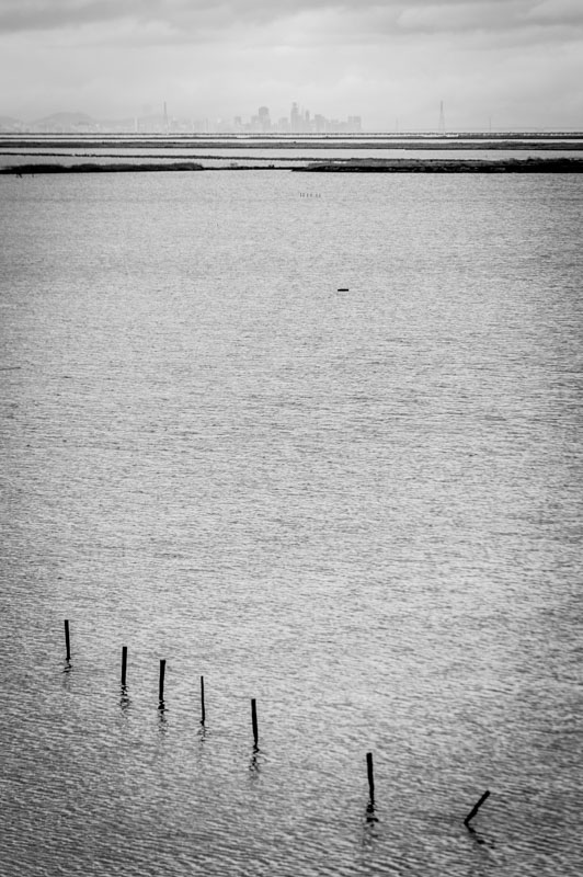 Normally light in the bay is a bit hazy at best, with not many days giving clear views of the San Francisco skyline. However, on this day the rainy mist had a different quality to it and I tried several different approaches to capturing the mood of it. None were really successful, but this one was perhaps the "least bad":