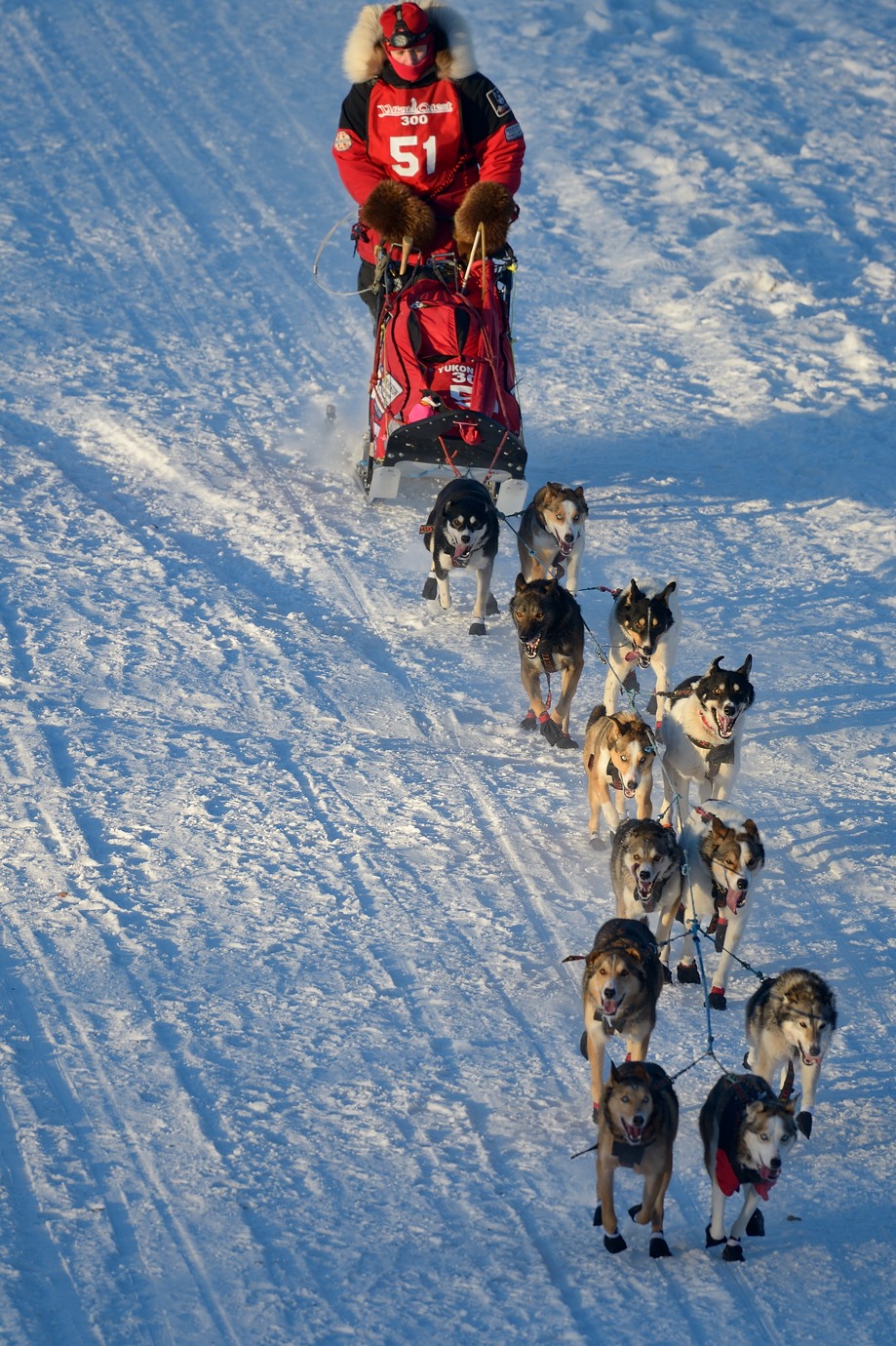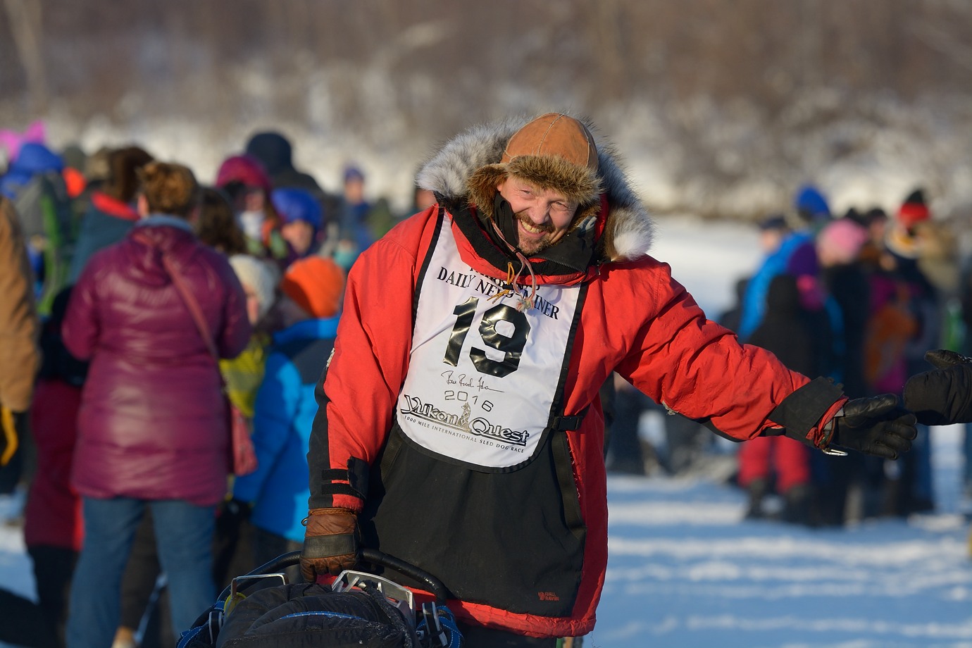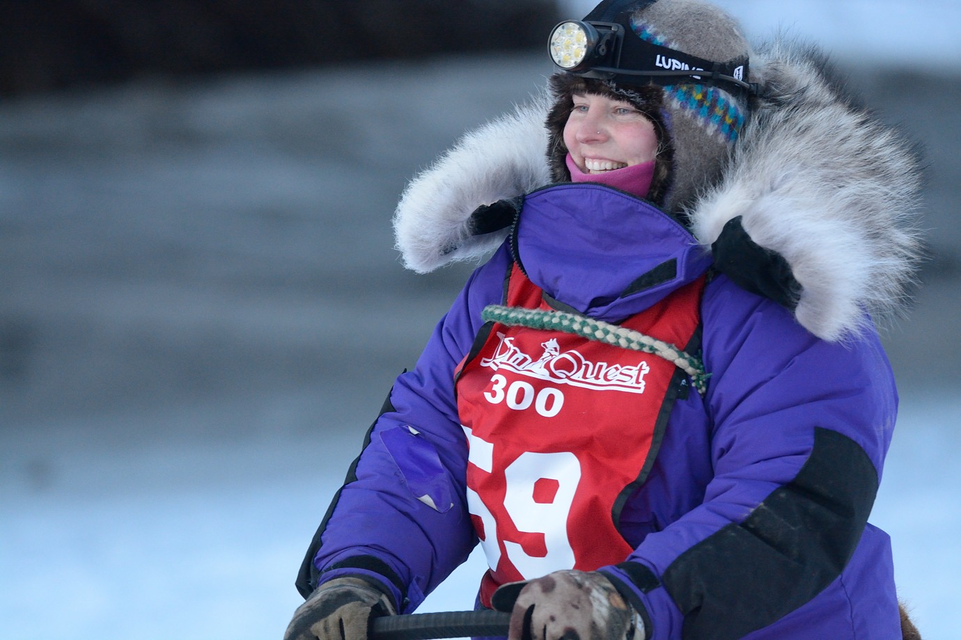 Winner of Yukon Quest 300, Jessie Holmes. Both seem to know how to keep warm.
