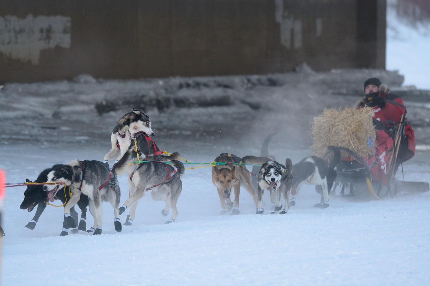 Most of the images I got was from the shorter 300mile version of this race, Yukon Quest 300, which also is a qualifying race for the full 1000 mile race. Here is former champion of the 1000 mile race, Aliy Zirkle with her team. She made a second place in Yukon Quest 300.