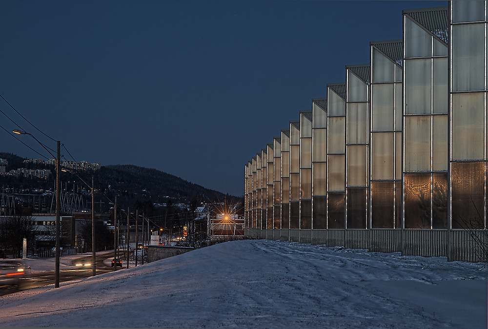 I'll post some more images later. For now, just snap of an industrial facade enveloped in that very soft, almost warm blue Nordic light occurring right after sunset. In the deep winter this light lasts for a short time, perhaps 20 minutes, while later in spring the period extends to hours and in summer lasts almost through the entire night, if you are south of the Polar Circle (otherwise there is the Midnight Sun).
