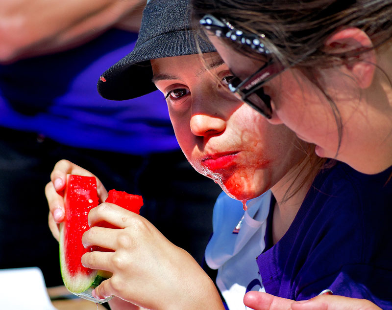 This was a watermelon eating contest. The young man pictured is wearing a hat because he lost his hair to chemo.