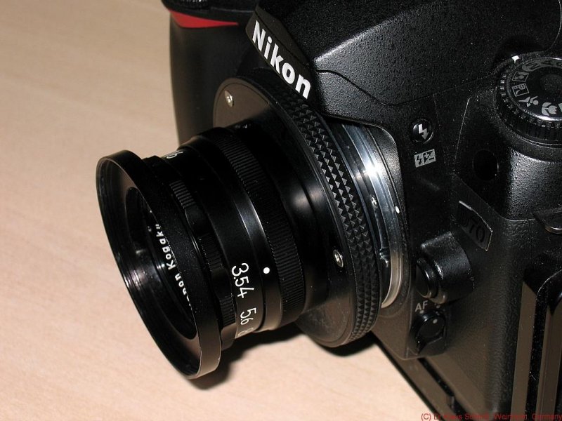 EL-Nikkor lens, thin M42-M39 ring, M42 focusing helicoid, Nikon adapter mounted: