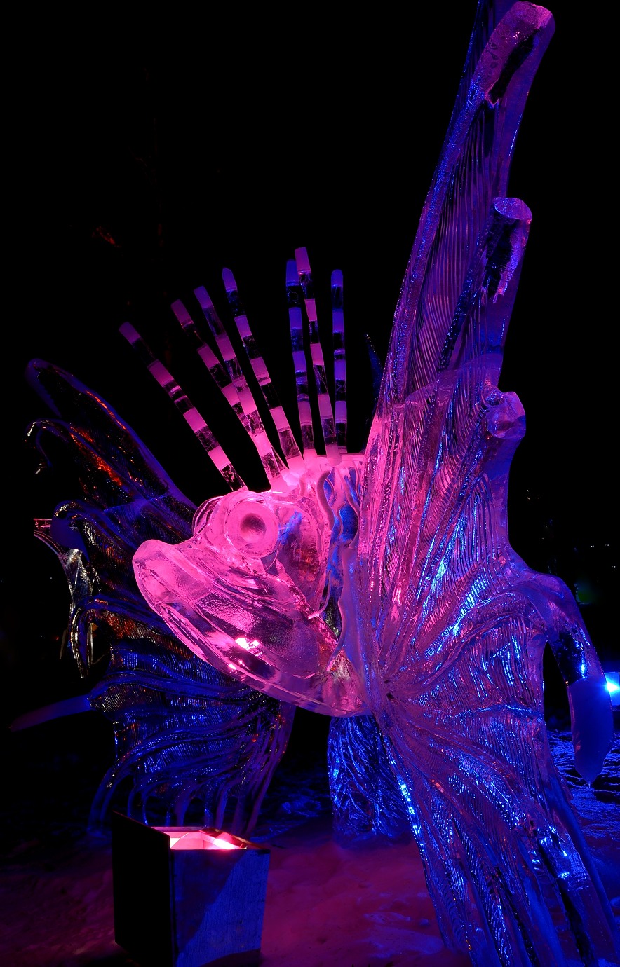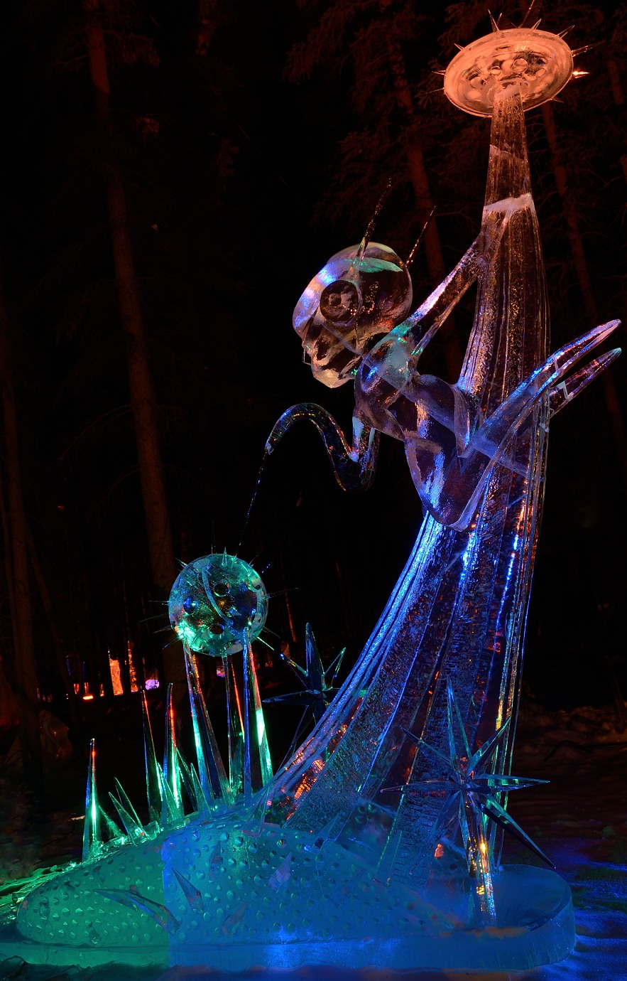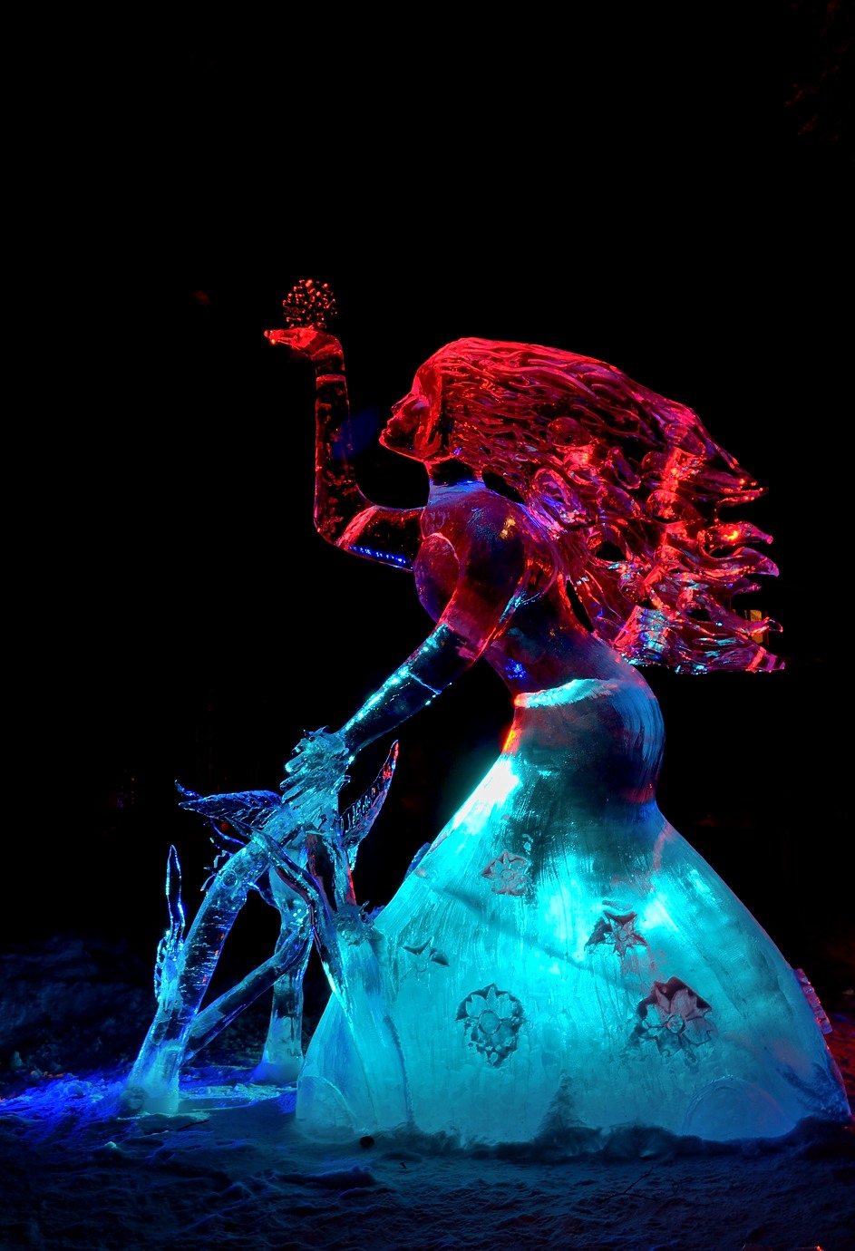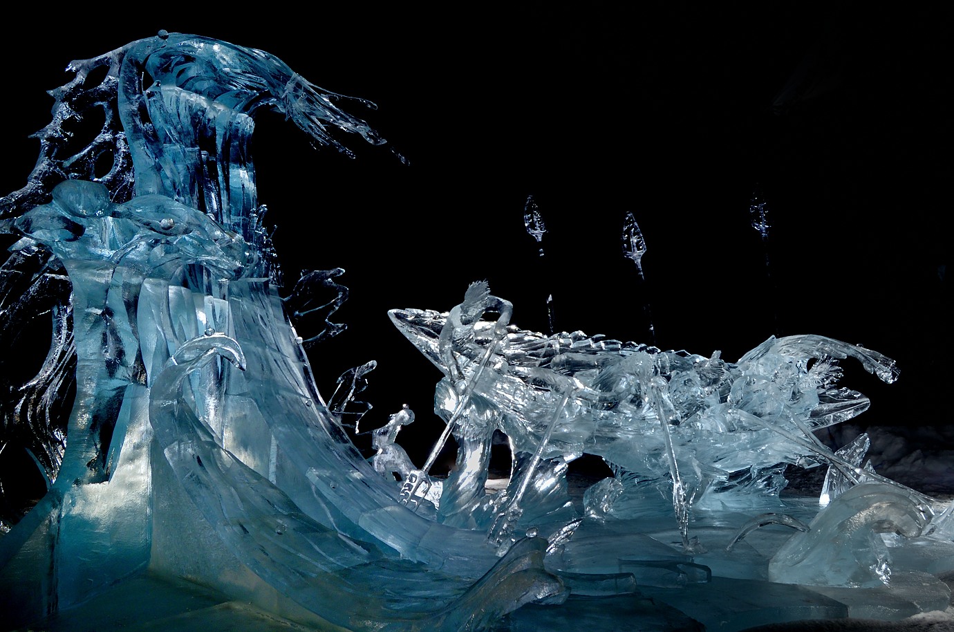 The 2013 Ice Festival. I am not sure if these were posted in the old forum. This was the second year I used my IR-converted D40x to capture some of the sculptures. Near visible IR light is filtered by the ice, allowing use of the IR camera to better distinguish the ice from the surroundings.