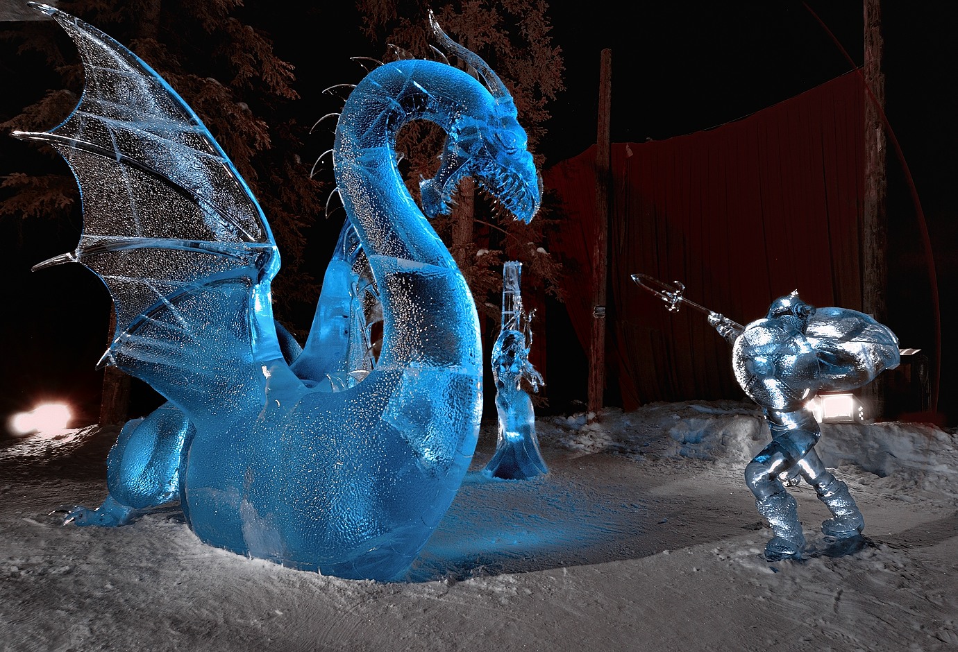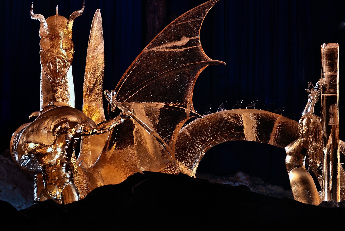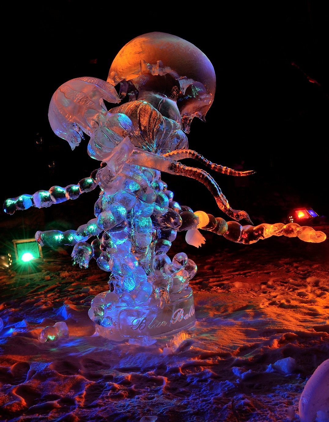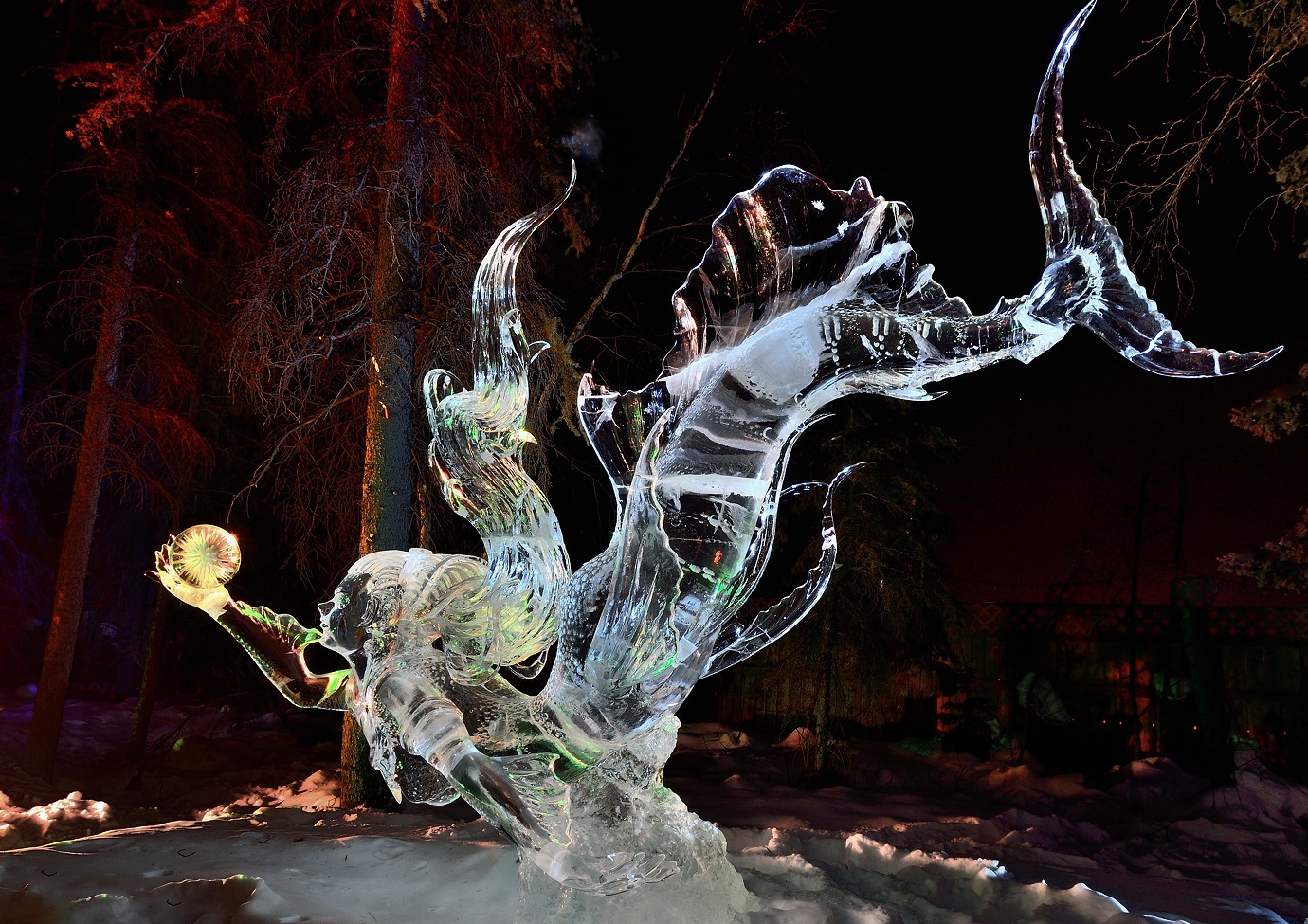 The 2013 Ice Festival. I am not sure if these were posted in the old forum. This was the second year I used my IR-converted D40x to capture some of the sculptures. Near visible IR light is filtered by the ice, allowing use of the IR camera to better distinguish the ice from the surroundings.