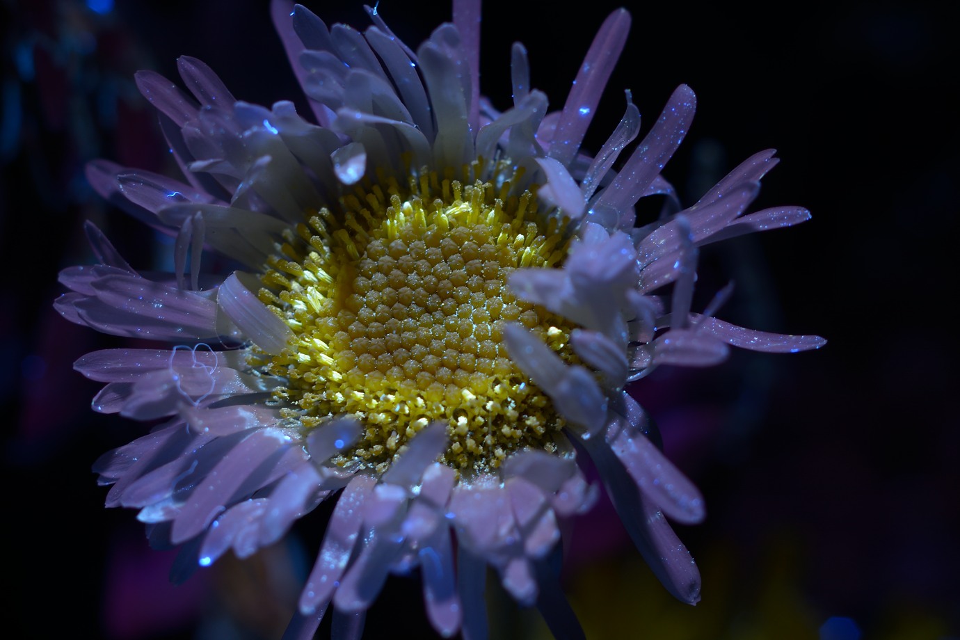 On the second day I had not planned anything and only brought the AW1 with me. The 11-27.5mm zoom is superb at the close limit and 27.5mm and f/6.3. The AW1 was just bracked on the desk as I do no have a tripod plate for it. These were actually better than the ones I did with the f/3.5 and f/2.8 versions of the 55mm Micro Nikkors, partly due to the resulting better depth of field. No L-37 filter used on the lens for these ones. The flower that was snatched from one of the flower beds at the university was white in visible light: