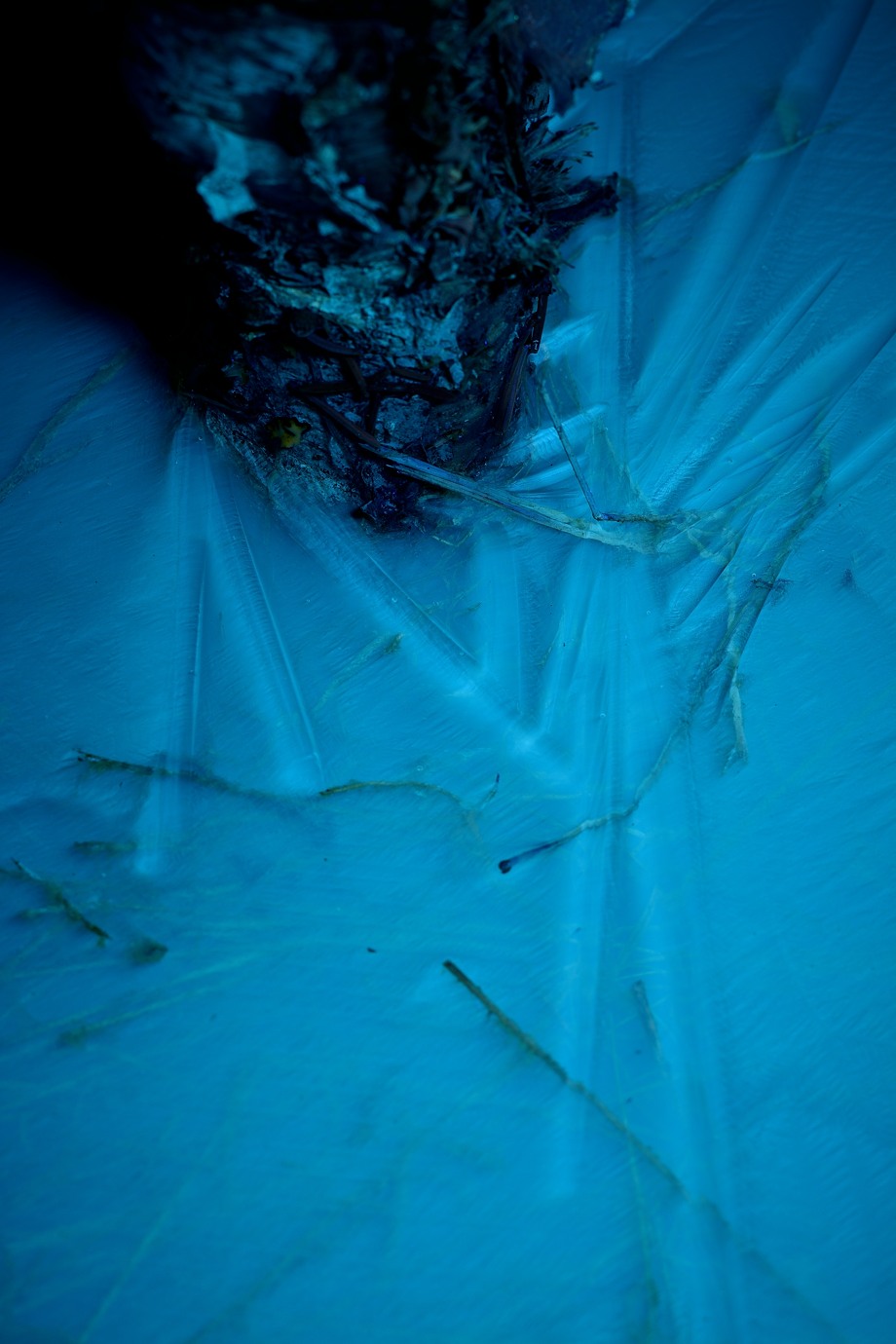 Very nice how the forms of the ice interact with the reflections of branches above.