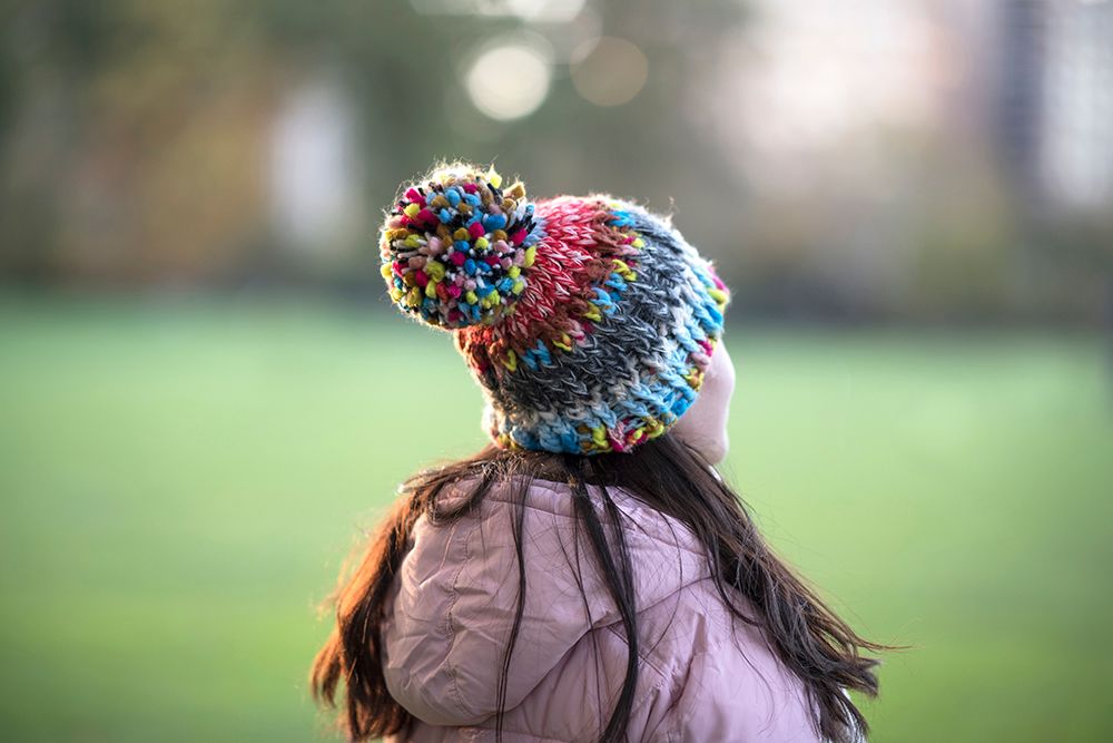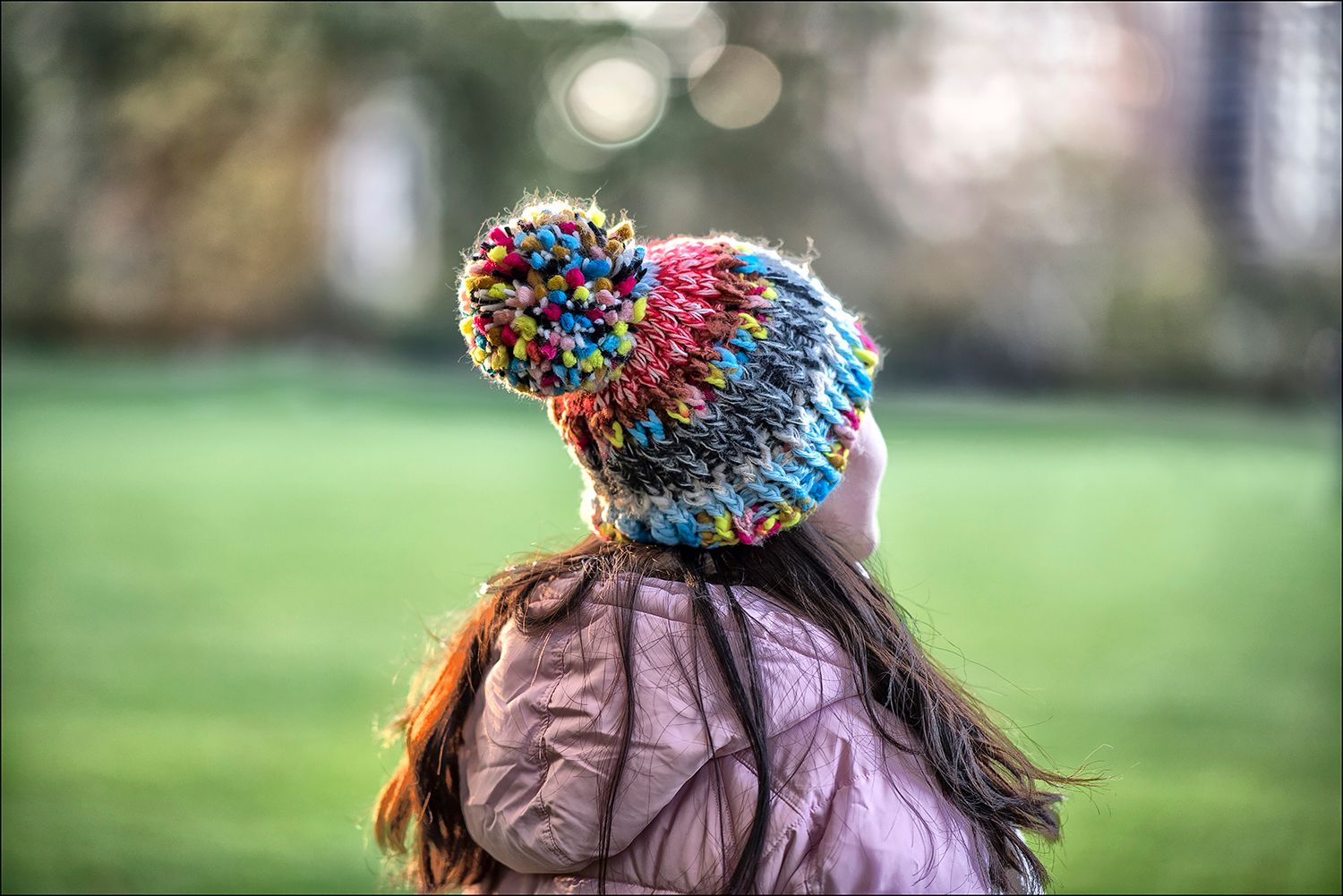 The high contrast and increased saturation bring out the construction, textures and colourful yarns in the hat.